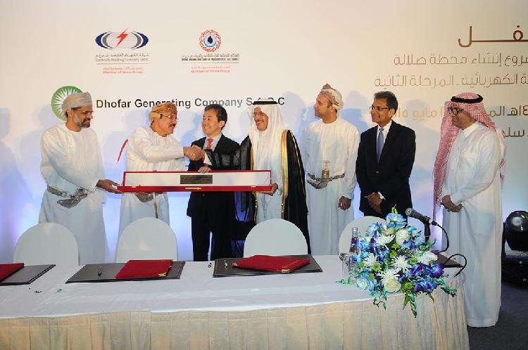 ووقع الاتفاقية الأستاذ محمد أبونيّان، رئيس مجلس ادارة شركة أكوا باور، والمهندس أحمد بن صالح الجهضمي، الرئيس التنفيذي للشركة العمانية لشراء الطاقة والمياه، والأستاذ طارق العجيلي، نائب رئيس مجلس إدارة شركة ظفار الدولية للتنمية والإستثمار القابضة، و الأستاذ كازوهيرو هاشيمورا، المدير العام للمشاريع في سوميتومو اليابانية، وتبلغ كلفة المحطة 620 مليون دولار امريكي (2.32 مليار ريال سعودي) وتعمل بطاقة انتاجية تصل إلى حوالي 445 ميجاوات و سيتم ربط المحطة الجديدة بالشبكة الكهربائية بمحافظة ظفار، وبموجب هذه الاتفاقية تحصل الشركة العمانية لشراء الطاقة والمياه على حق شراء الطاقة المنتجة لمدة تبلغ 15 عام، على أن يتم التشغيل التجاري للمحطة وفقا للبرنامج الزمني المخطط له في الربع الاول من 2018.